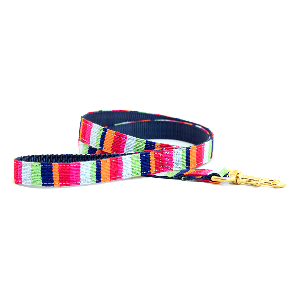 Using hand-woven material made for us in Guatemala and then finished in the US, each colorful collar and lead is 100% colorfast making them machine washable. (Hang dry, please.) Our side release buckles are the best we could find, adding to their strength while making them easy to put on and take off. Combined with our premium nylon webbing and solid brass hardware, these collars and leads stand up to an ocean of wear. We guarantee it! The solid brass finish won't ever rust or chip, helping to keep your dog looking smart... like a good dog should.