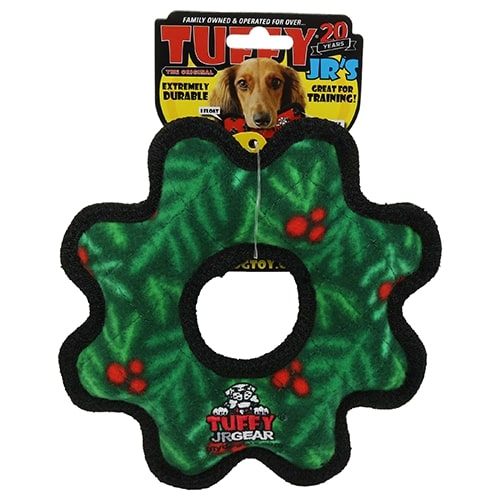 Tuffy® Holiday Junior Gear Ring - Great for interactive play. Can be used as a frisbee or a tug toy. Machine washable (air dry) and it floats!