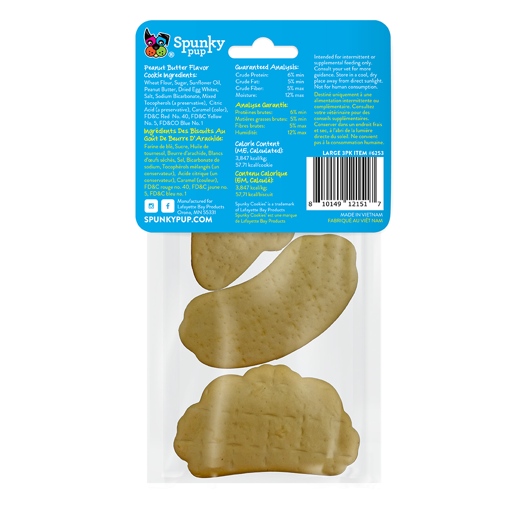 Treat your pup to a delicious snack with our Spunky Cookies from Spunky Pup! These small-batch, hand-decorated treats are crafted with care, featuring a dog-approved peanut butter flavor and a crispy texture. Each cookie is adorned with colorful, pet-safe frosting in fun, collectible designs, making every bite a delightful experience. Vacuum-sealed to lock in freshness, they’re perfect for on-the-go snacking or at-home rewards. Choose the XL single pack for a hearty treat or the L 3-pack to stock up on tail-wagging goodness.