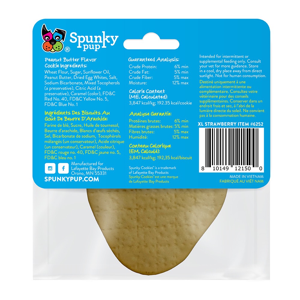 Treat your pup to a delicious snack with our Spunky Cookies from Spunky Pup! These small-batch, hand-decorated treats are crafted with care, featuring a dog-approved peanut butter flavor and a crispy texture. Each cookie is adorned with colorful, pet-safe frosting in fun, collectible designs, making every bite a delightful experience. Vacuum-sealed to lock in freshness, they’re perfect for on-the-go snacking or at-home rewards. Choose the XL single pack for a hearty treat or the L 3-pack to stock up on tail-wagging goodness.