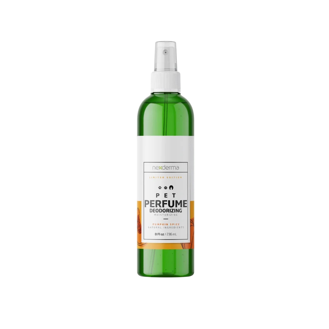 Nexderma Pumpkin Spice pet perfume hydrates and deodorizes the skin and coat leaving dogs with a light natural pumpkin spice scent between baths.