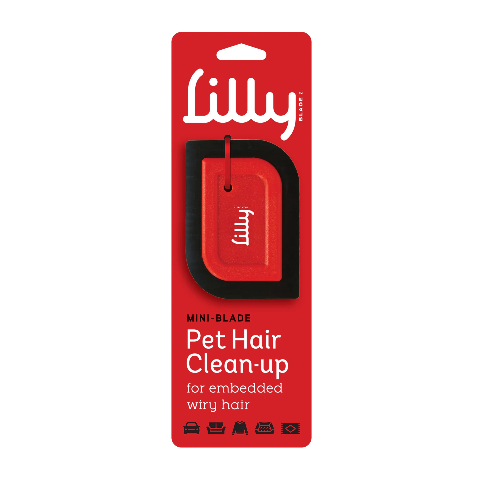 Our Mini-Blade targets embedded, wiry pet hair, that is short to medium in length. Ideal for use on couches, household furniture, pet beds, carpet, stairs, rugs and more! Our products are safe for all fabrics, faster than sticky brushes, more efficient than a vacuum and last for years.
