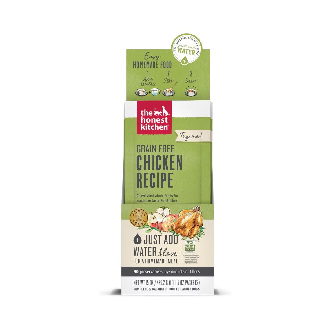 The Honest Kitchen Grain-Free Chicken Dehydrated Dog Food is packed full of su-paw tasty human-grade ingredients like free range chicken, green beans and apples. It’s gently dehydrated to maintain the nutrients and paw-some taste. The result is a complete and balanced diet for adult dogs of all breeds and sizes, including senior dogs. The food is free of preservatives, byproducts, fillers, GMO ingredients, corn, wheat or soy, so you can feel good about feeding it to your best friend. Just add some warm water and wait three minutes for a fresher, homemade meal that your furbaby will love.