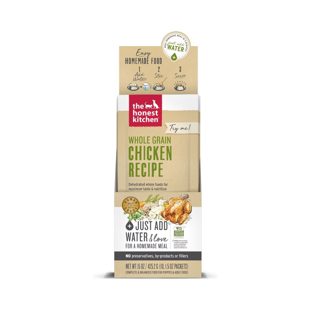 Made with real, whole food ingredients like free range chicken, organic oats, carrots, and bananas.Just add warm water for a su-paw tasty meal you can...