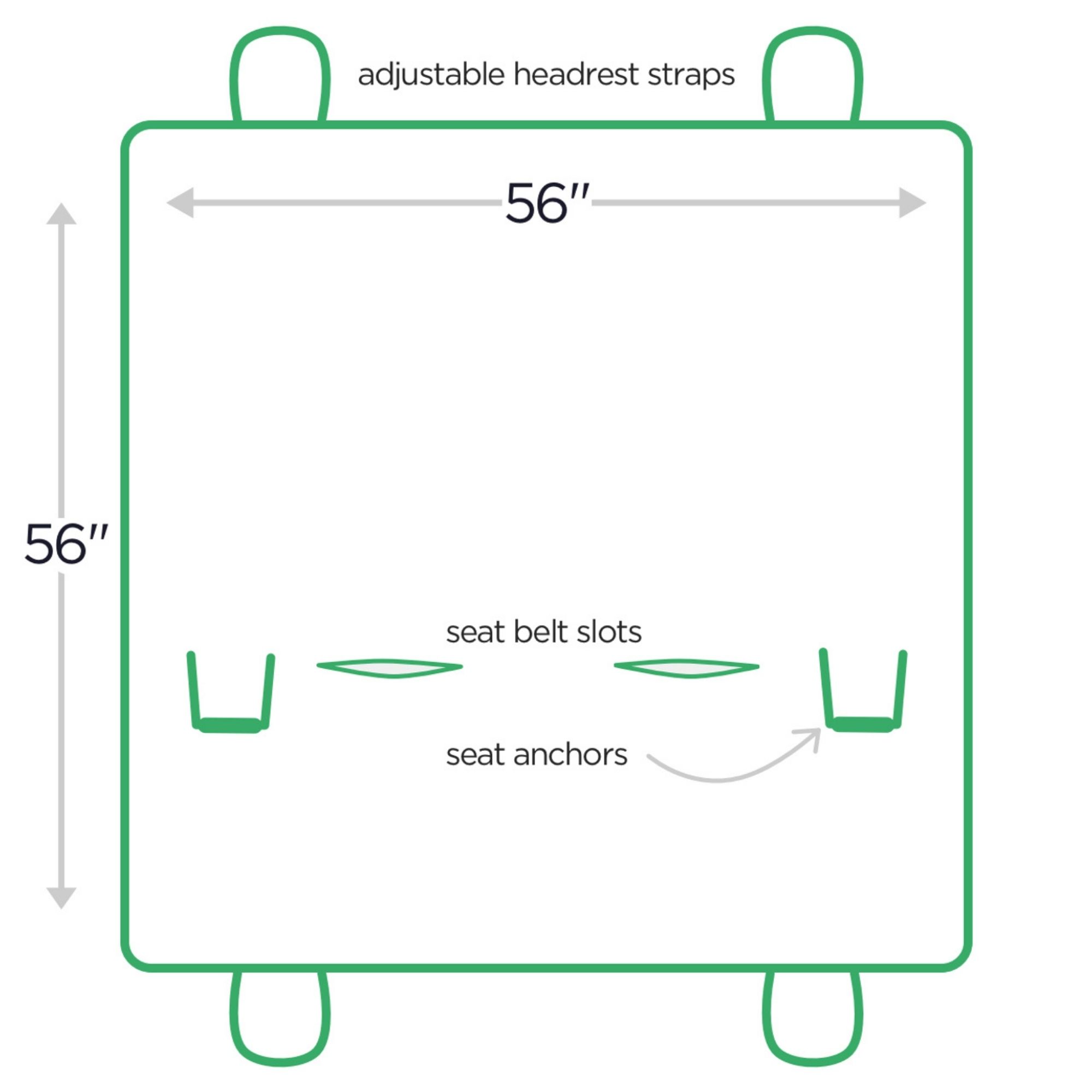 • Car seat covers measure 56" x 56" and fit all vehicles with front & back seat headrests.