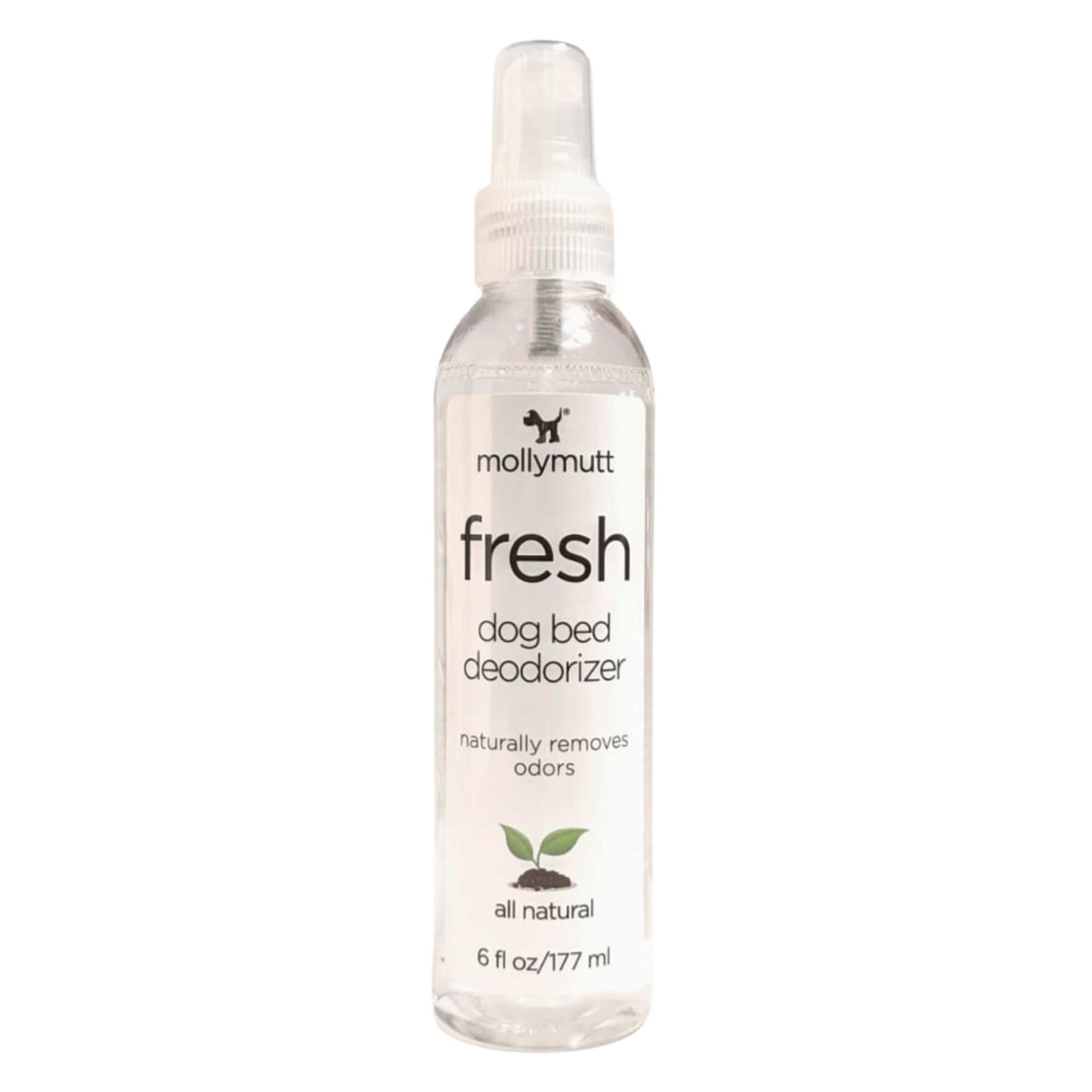 For those times when your dog's bed is a bit stinky, but it's not time to do laundry, there's molly mutt dog bed deodorizer! just a few sprays will remove—not just cover—odors with safe, natural enzymes.