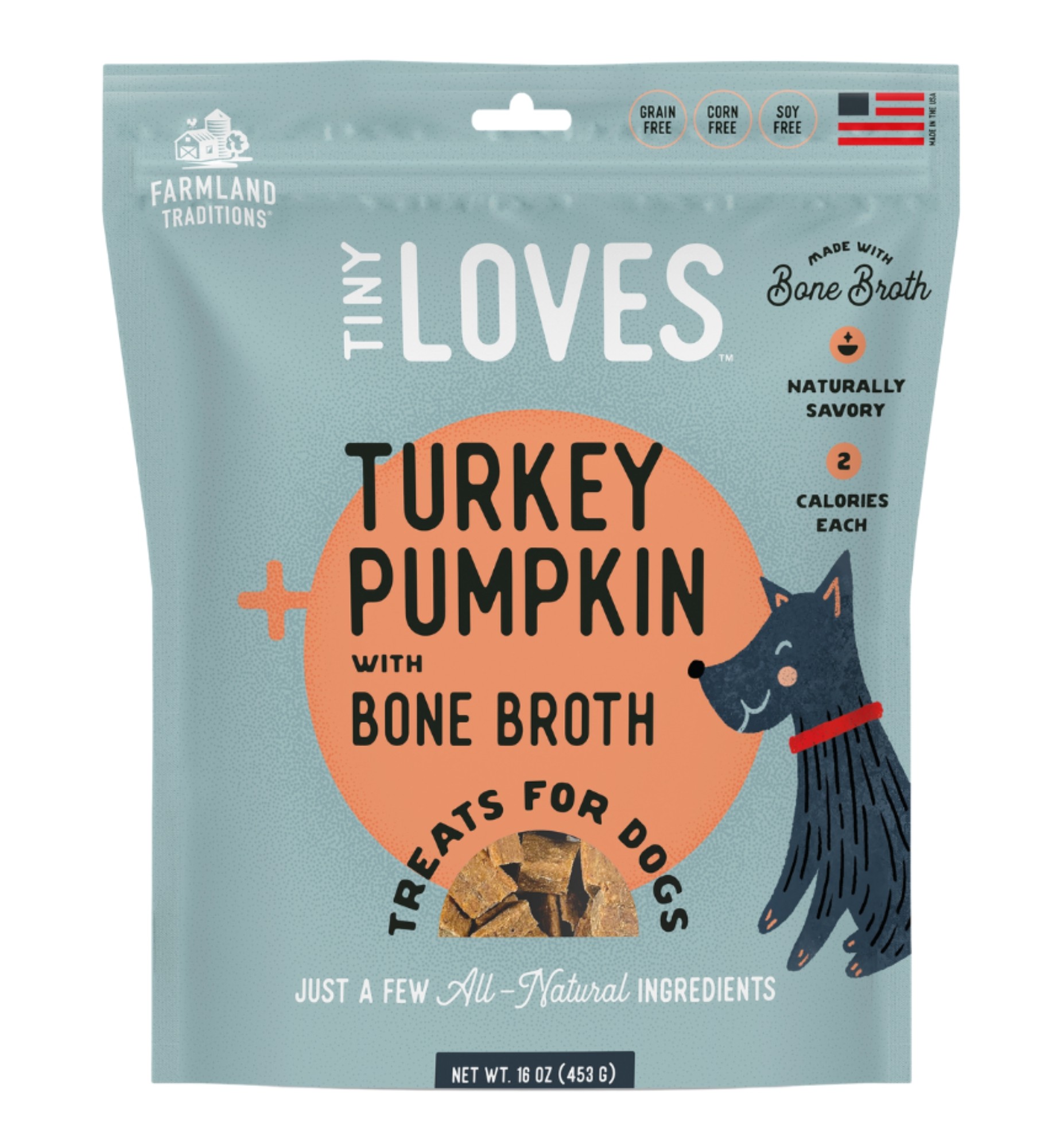 Here’s a flavor combination fit for a holiday feast: Farmland Traditions Tiny Loves™ Turkey and Pumpkin with Bone Broth treats. These tempting morsels pack huge flavor into every small bite for a delicious treat your best friend will love as a training reward—or even as a tempting topper!