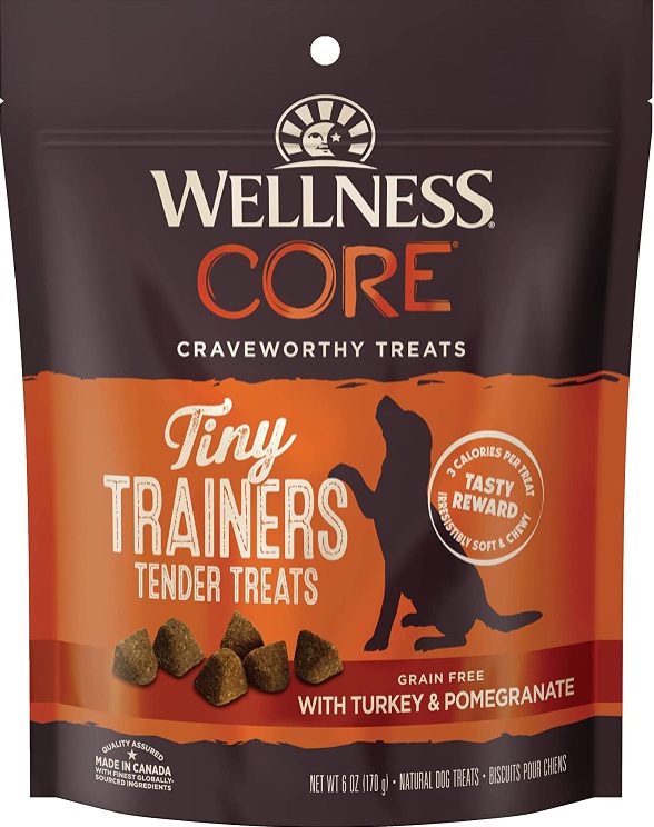 Wellness CORE Tiny Trainers Turkey & Pomegranate Tender Treats (formerly Petite Treats) are grain free, all natural small breed treats packed with turkey & pomegranate and sized just for small breeds. Each mini-bite is packed with great flavor from premium ingredients along with flaxseed to promote a healthy, shiny coat. br/>Sold in Qty of 1