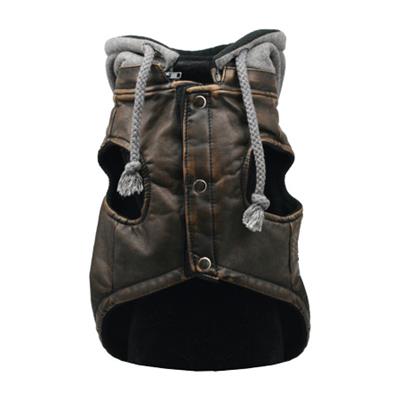 Distressed soft faux leather bomber jacket lined in warm fleece Detachable lined fleece hoodie with drawstring for perfect fit ...