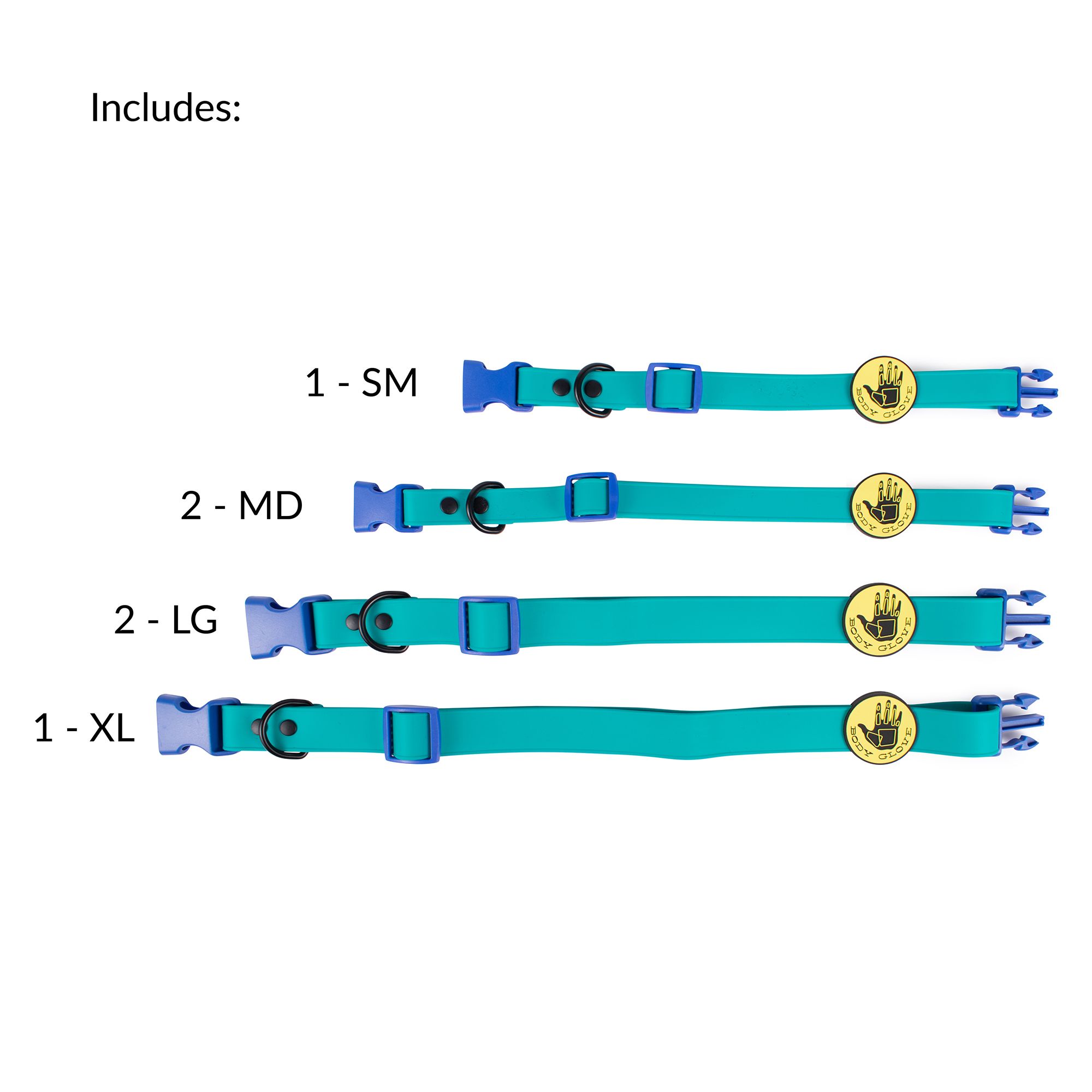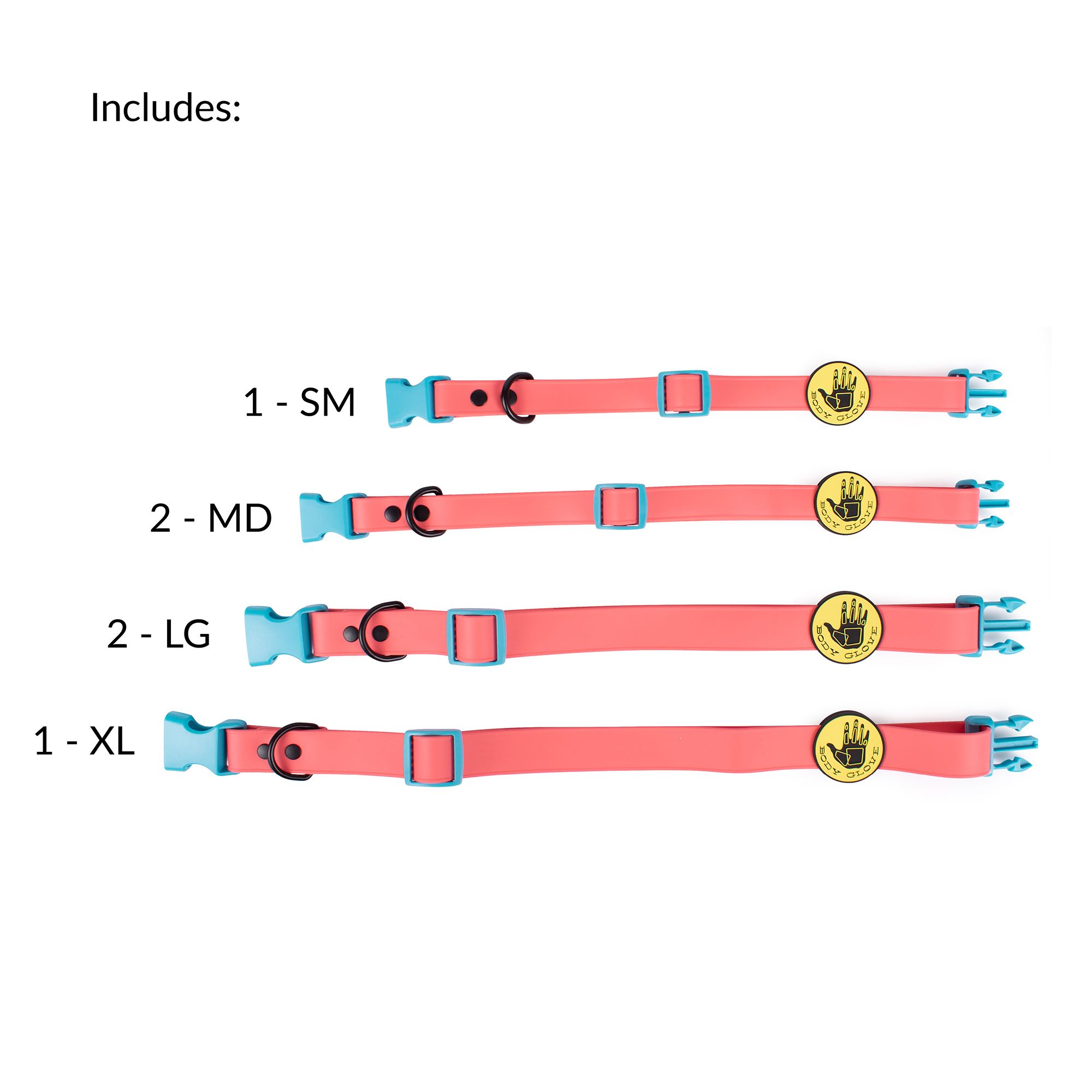 This assortment ensures you’re stocked with a balanced selection of popular sizes and matching leashes.