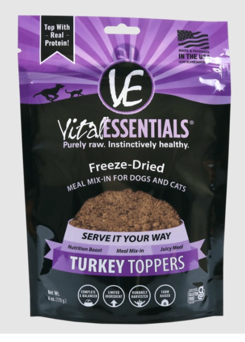 Vital Essentials Freeze Dried Dog And Cat Turkey - Toppers 6oz.