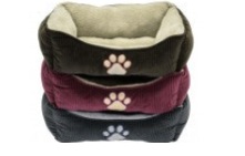 Dallas Maunufacturing Box Bed with Paw Print 25in 25in Textured Zig Zag Cord Home Decor Pattern. Paw Facing Embroidery on front of bed. Soft Microtec Sleep Surface. Pet Bed is Machine Washable. br/>Sold as Quantity: 1