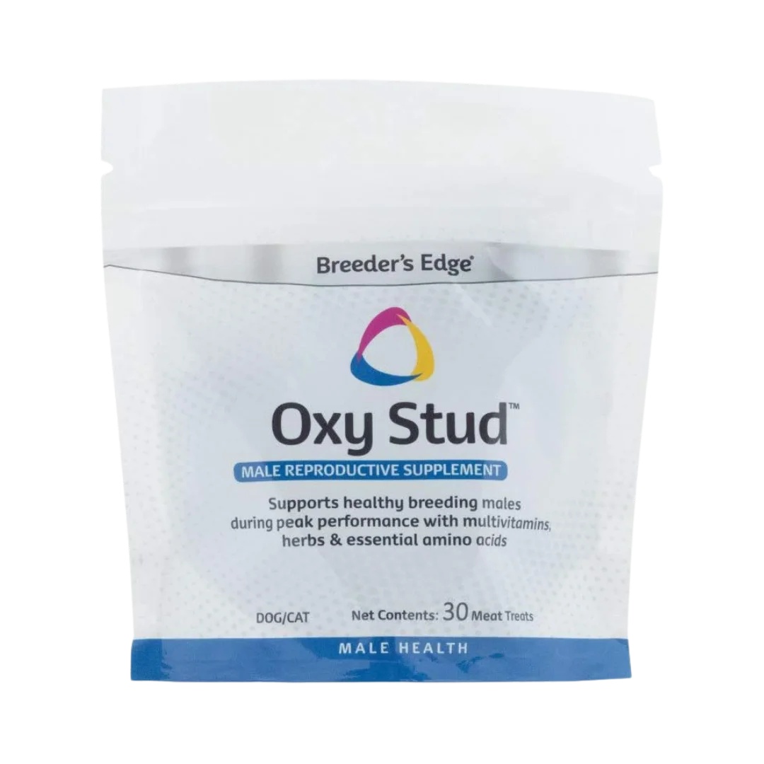 Breeder's Edge Oxy Stud Meat Treats 30ct premium male reproductive support for dogs and cats.