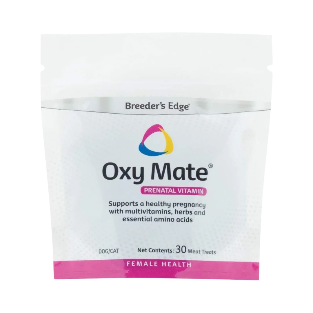 Breeder's Edge Oxy Mate Prenatal Meat Treats 30ct is a comprehensive prenatal supplement for pregnant dogs and cats.