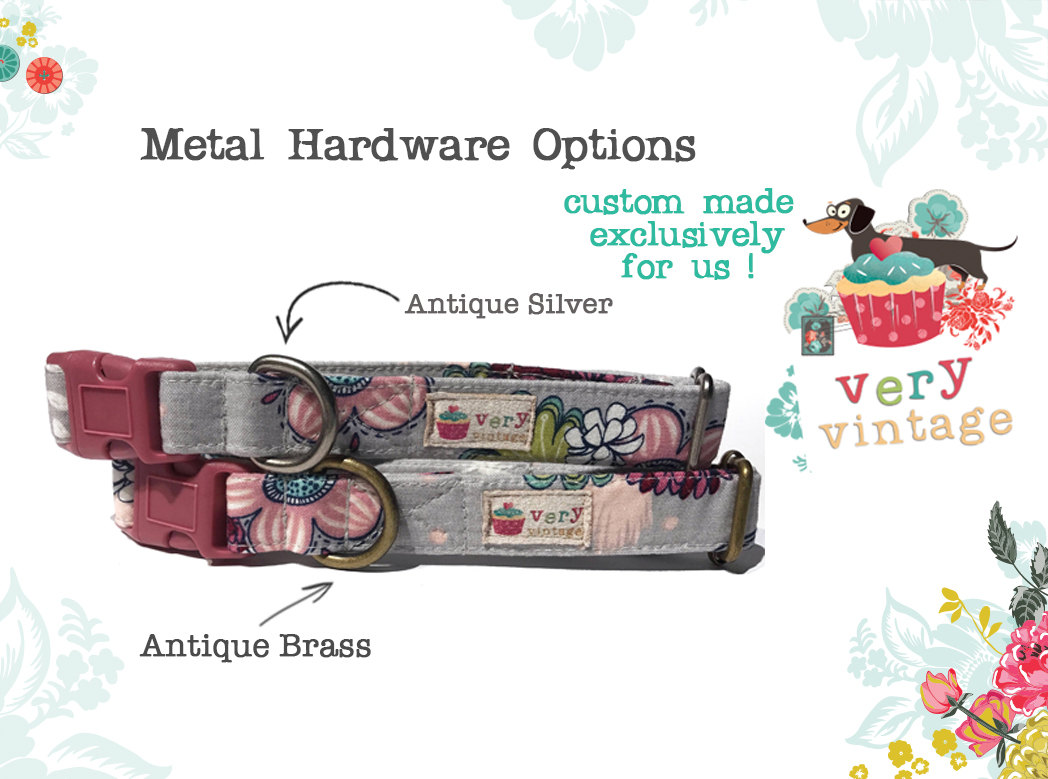 Each collar is finished with a deep green buckle and your choice of antique brass or antique silver hardware. Matching leash available to complete the set!