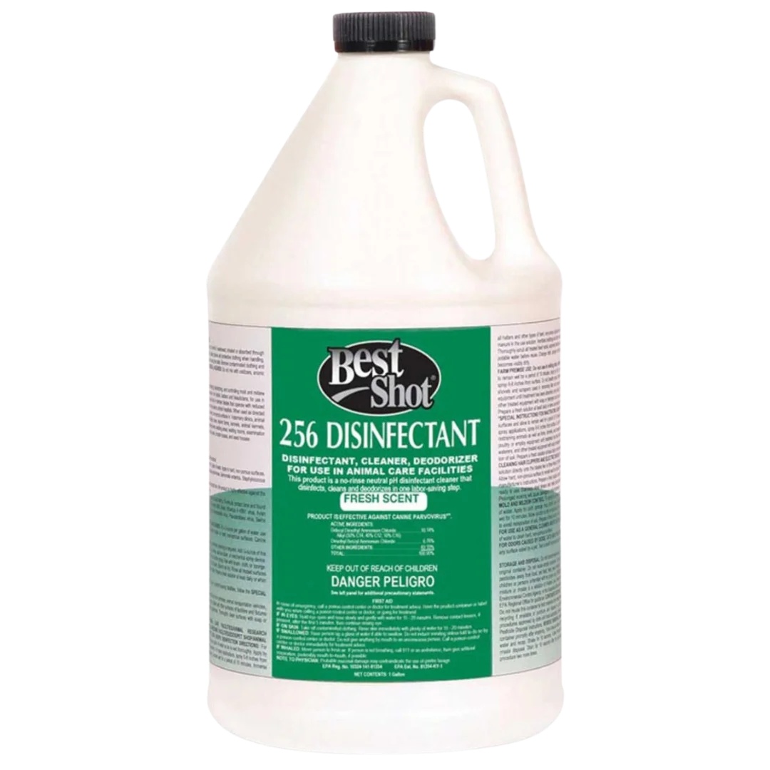Best Shot Fresh 256 Disinfectant one-step concentrate that cleans, deodorizes, and disinfects with a fresh scent.