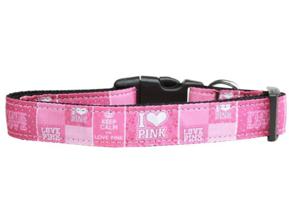 Pet Dog & Cat Nylon Collar or Leash, "I Heart Pink" This fashionable, durable nylon ribbon dog collar or cat collar is sure to make your pet the talk of...