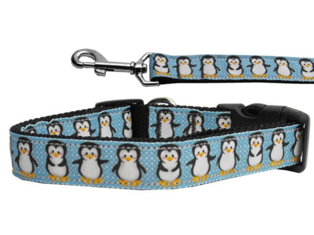 Christmas Pet Dog & Cat Nylon Collar or Leash, "Penguins"