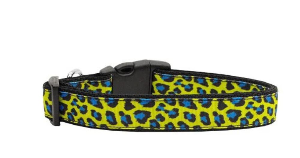 Pet Dog & Cat Nylon Collar or Leash, "Blue and Yellow Leopard Print" This fashionable, durable nylon ribbon dog collar or cat collar is sure to make your...