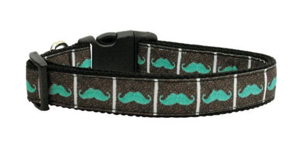 Pet Dog & Cat Nylon Collar or Leash, "Aqua Moustaches" This fashionable, durable nylon ribbon dog collar or cat collar is sure to make your pet the talk...
