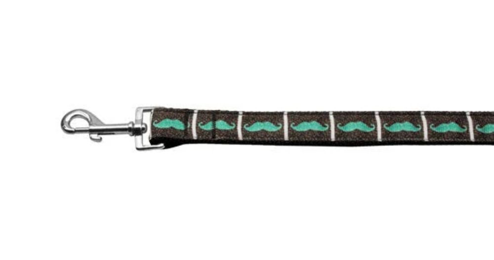 Pet Dog & Cat Nylon Collar or Leash, "Aqua Moustaches"