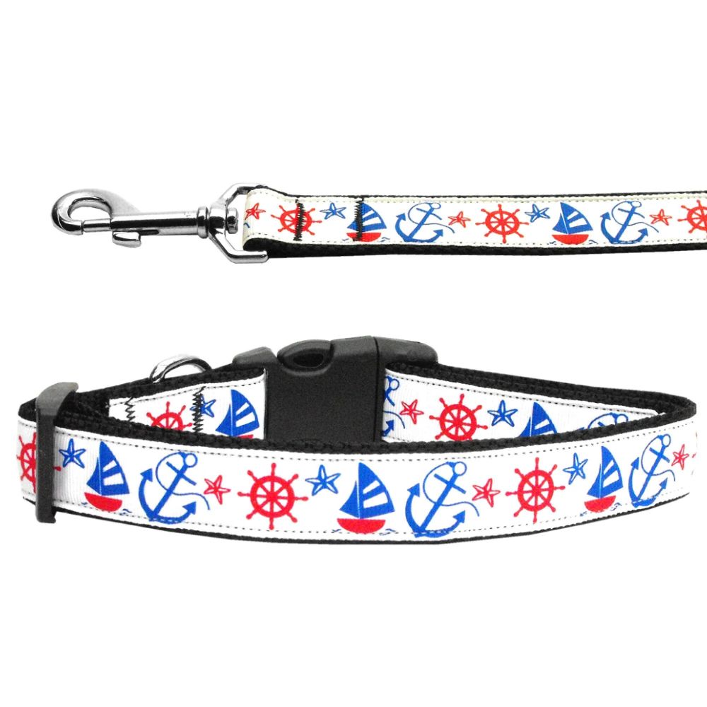 Pet Dog & Cat Nylon Collar or Leash, "Anchors Away" This fashionable, durable nylon ribbon dog collar or cat collar is sure to make your pet the talk of...