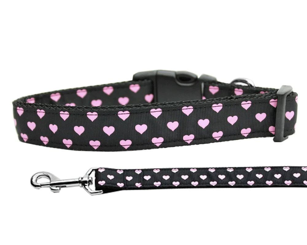 Pet Dog and Cat Nylon Collar or Leash, "Pink & Black Dotty Hearts"