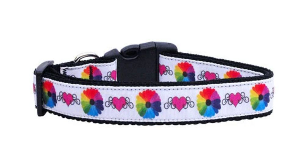 Pet Dog & Cat Nylon Collar or Leash, "Technicolor Love" This fashionable, durable nylon ribbon dog collar or cat collar is sure to make your pet the talk...