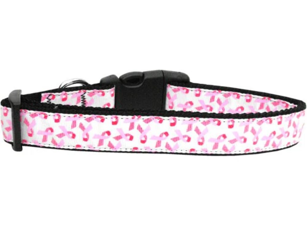 Pet Dog & Cat Nylon Collar or Leash, "Pink Ribbons On White" This fashionable, durable nylon ribbon dog collar or cat collar is sure to make your pet the...