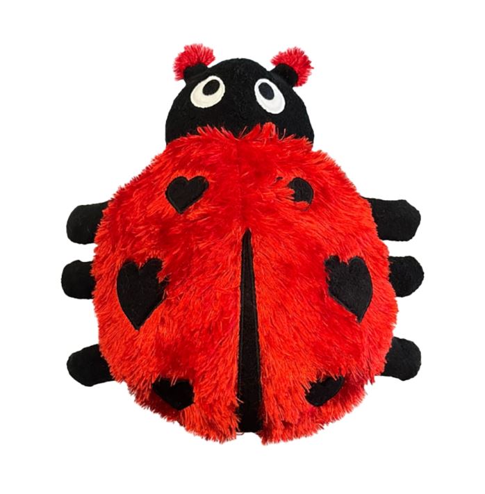 Product Description Spotted and sweet with hearts on her back, this lovebug is ready to snuggle! With super shaggy fur, a grunter and a squeaker inside, she’s all charm and cheer—perfect for pups who love a little extra fluff with their playtime!