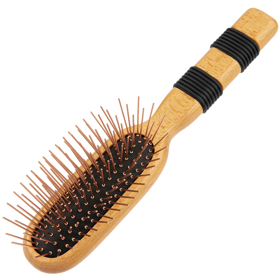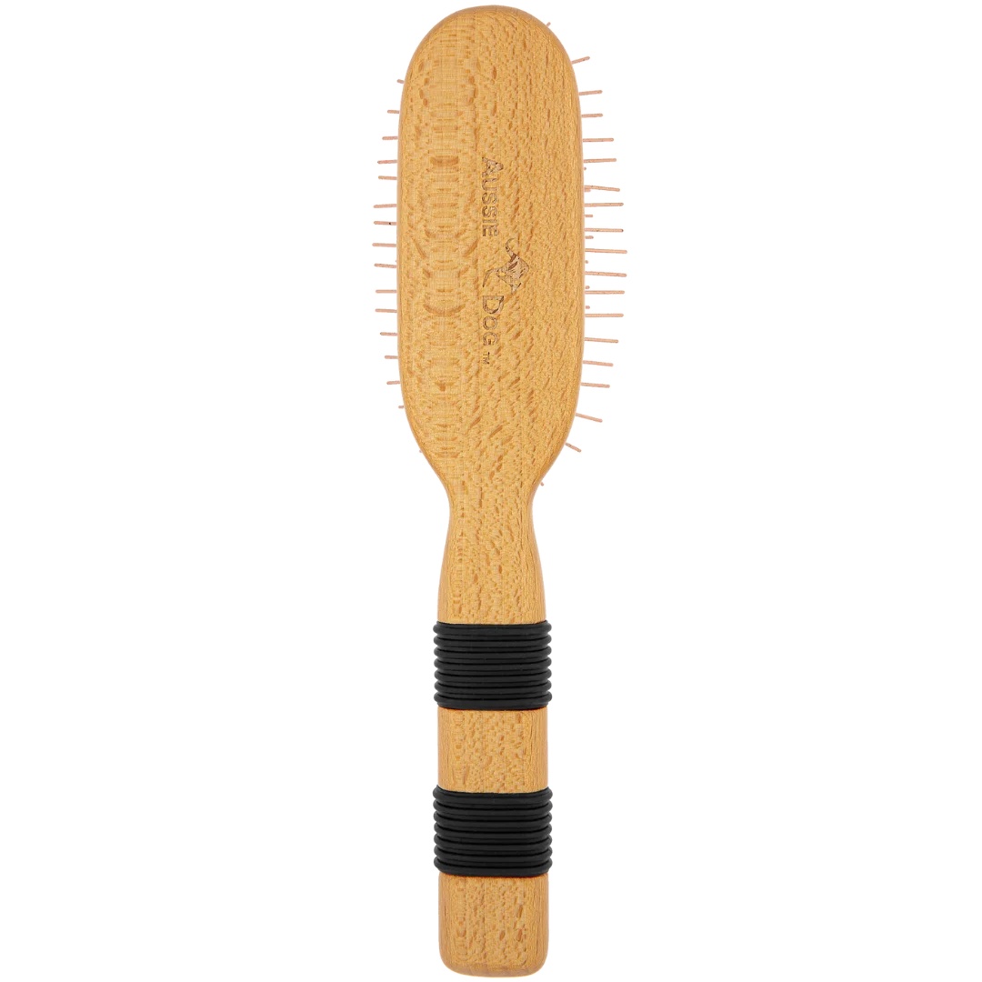 Aussie Dog Rounded Pins Oblang Brush oak-based pin brush with copper-fused, anti-bacterial rounded pins for breeders, and groomers.