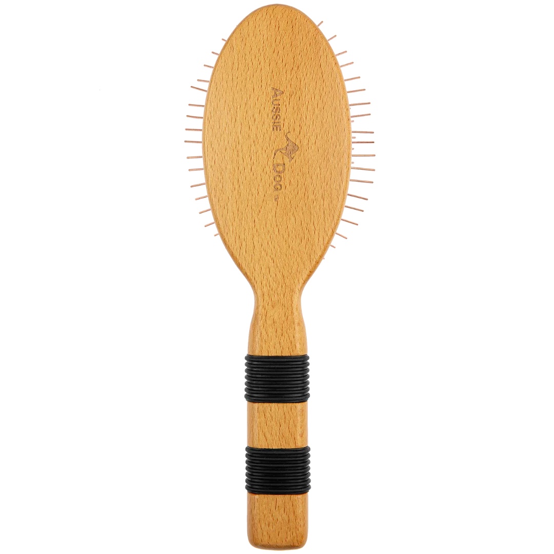 Aussie Dog Rounded Pins Oval Brush oak-based pin brush with copper-fused, anti-bacterial rounded pins for breeders, and groomers.