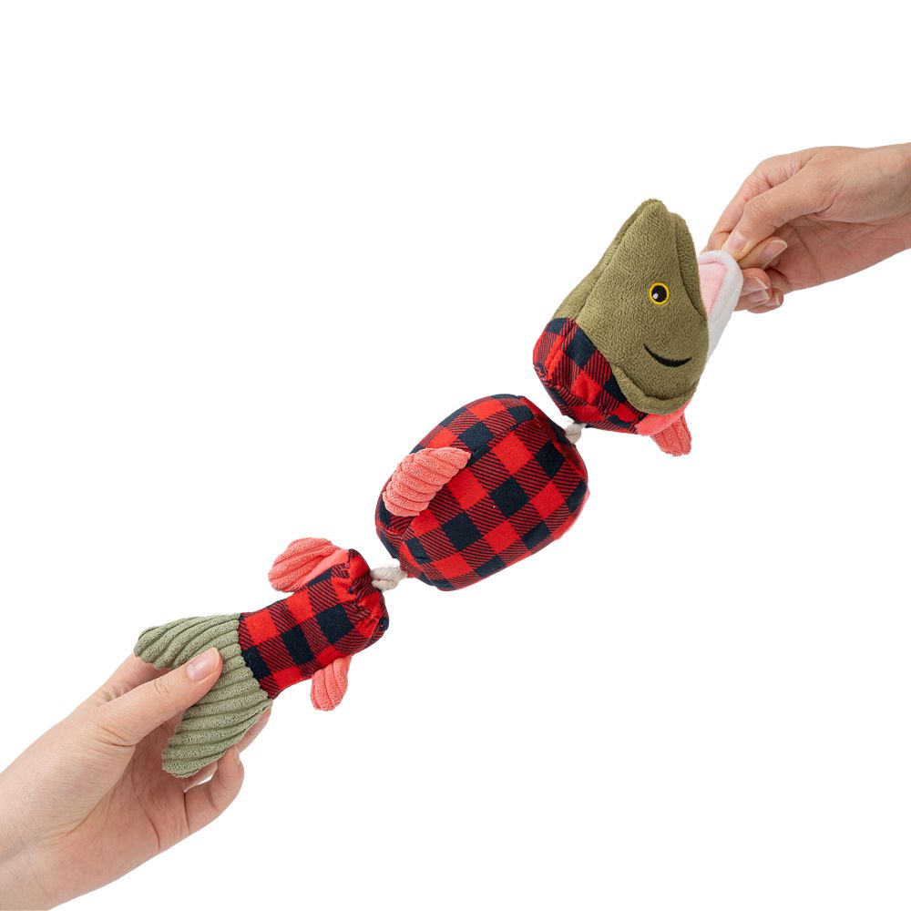Playtime is a core pillar of a dog's overall health & wellness. We recommend making time every day for interactive play between people and their dog. Playtime reinforces the special bond people share with their furry friend and provides dogs with the vital stimulation and exercise they need. Our toy line is designed with cuddles and auditory stimulation play in mind. Made with sturdy materials, stitched together with reinforced mesh fabric for reassured durability, to be a pup's new favorite toy to cuddle, retrieve, and tug.