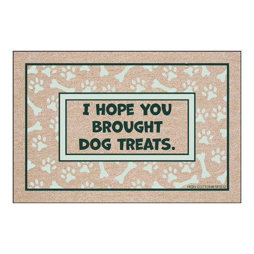 Humorous greeting for all homes with pets. These are 18" x 27" Olefin Indoor/Outdoor carpet with perfect bound stitched edges. USA MADE!