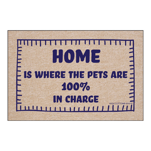 Humorous greeting for all homes with pets. These are 18" x 27" Olefin Indoor/Outdoor carpet with perfect bound stitched edges. USA MADE!