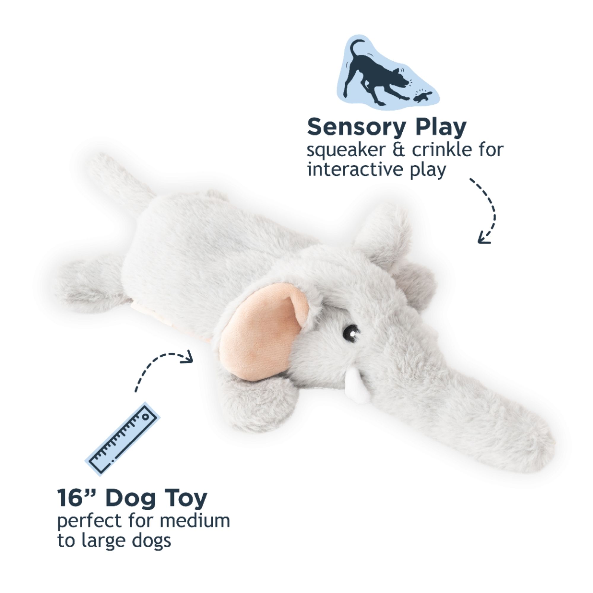 Continue the adventure indoors with Tall Tails' Stuffless Elephant Squeaker Dog Toy! Cuddle, squeak, throw, repeat — this stuffless squeaker dog toy is made with you and your pup in mind. Fashioned for a floppy rope body structure for endless rounds of play, our toys make for paw-fect no-mess fun. In addition, our squeakers are sewn into a separate pouch and stitched into the seam for extra protection.