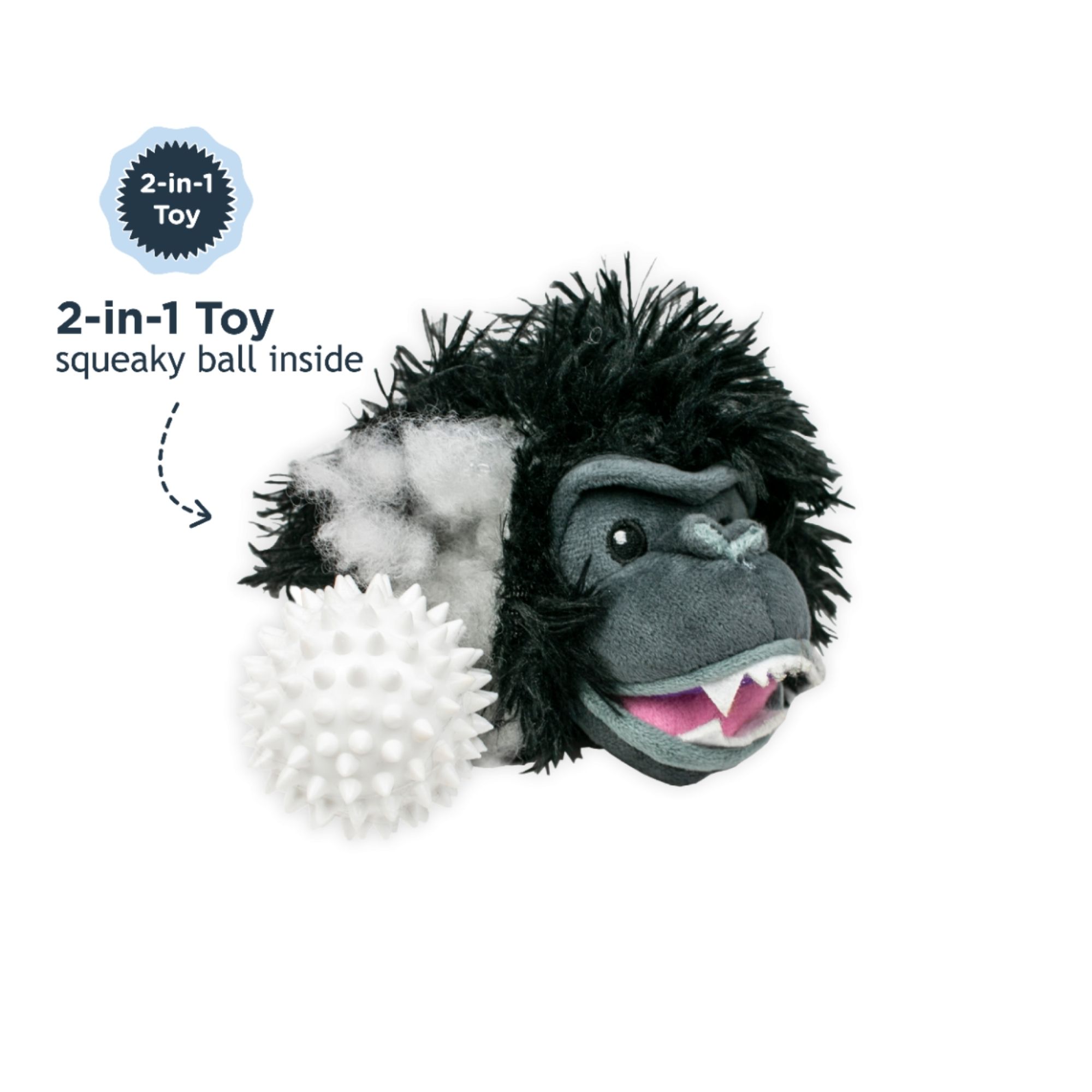 • Indoor Fetch Play • Made for Medium to Large Dogs • Stuffing Made from Recycled Bottles • 4" 2-in-1 plush fetch ball dog toy available in 5 different styles • Fun continues with 2.5" squeaky bonus ball inside • Reinforced mesh fabric for longer-lasting fun • Ideal for dogs who love to fetch and find • Perfect for indoor fetch play • Stuffing made from 100% recycled plastic bottles • Spot clean recommended