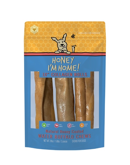 HONEY I'M HOME DOG NATURAL HONEY COATED BUFFALO COLLAGEN ROLLS 10 INCHES 3 PACK