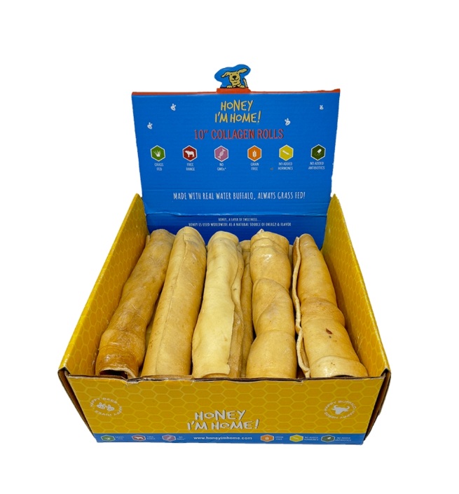 HONEY I'M HOME DOG NATURAL HONEY COATED BUFFALO COLLAGEN ROLLS 10 INCHES - 10 COUNT
