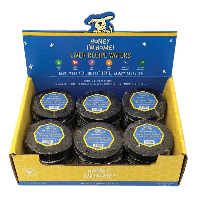 Sweeten the deal during training or outings with Honey I'm Home! Natural Honey Coated Buffalo Liver Recipe Wafers Dog Treats. These protein-dense treats provide loads of wag-worthy liver flavor, with naturally nutritious ingredients you’ll be glad to give your pup. They’re made with grass-fed, free-range buffalo liver and a healthy hint of honey, with no grain or GMOs to upset a delicate tummy or cause you concern. The convenient wafer shape allows you serve them whole or break them up for smaller servings––and the savory and sweet taste will have your pup running back for more!