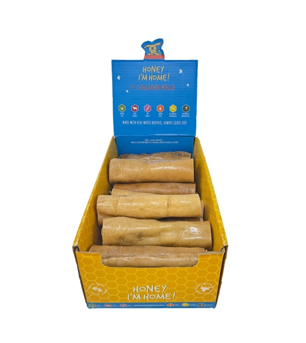 Honey I'm Home Dog Natural Honey Coated Buffalo Collagen Rolls 6 Inches - 16 Count