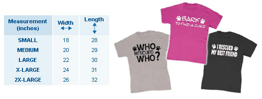 *Important Note: Pet Lover’s T-shirts are sold in 2-packs by color and size. One 2-pack is two T-shirts of the same color and size.